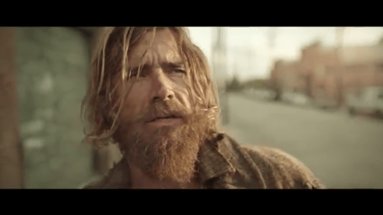 Describe the homeless man’s appearance.
